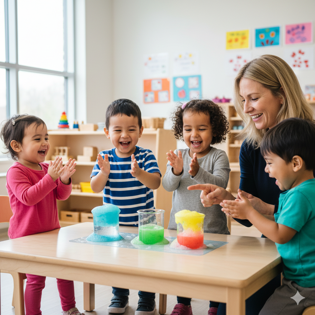 Asking 'Why?' and 'How?' We ignite interest by encouraging kids to observe and question the world around them before diving into experiments.